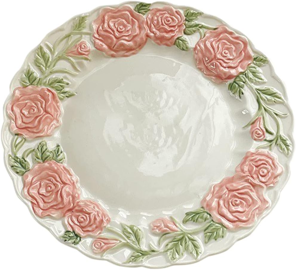 1 Pcs Green Ceramic Salad Plate, 10.5 Inch Porcelain Decorative Plates for Kitchen, Round cabbage dishware for Dessert, Decorative, Dinner, Pancakes, Steak, Cabbage Plate Microwave & Dishwasher Safe